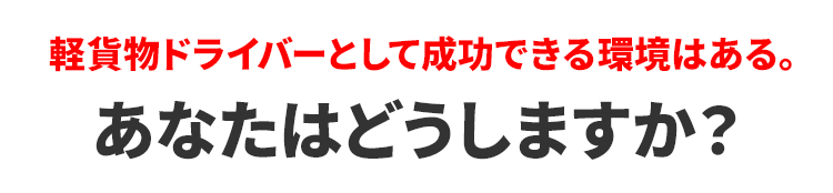ここまで、何度も軽貨物ドライバーが今ものすごく勢いがあるお仕事ということをお伝えしてきました。あとは話を聞いてみるか、今のままの日々を過ごすかはあなた次第です。