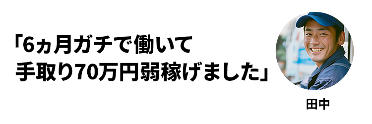 軽貨物ドライバーの最大の魅力は、とにかくやった分が収入に直結する稼げる高収入。未経験からでも働きだした初月から高収入が狙えるんです。例えば、前職で公務員をしていた田中さん(25歳)は、未経験から6ヵ月で月694,985円稼ぎました。軽貨物ドライバーをはじめて1年、2年後の話じゃあありませんよ、、、はじめて2ヵ月で最高日当35,300円、6ヵ月後の手取りは694,985円です。田中さんだけではありません。私たちの仲間にはこういう20代がたくさんいます。