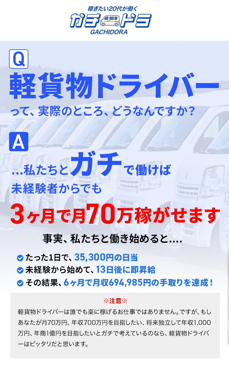 、私たちガチドラと一緒に軽貨物ドライバーとして最高のスタートを切りませんか?あなたとお話しできることを楽しみにしています。